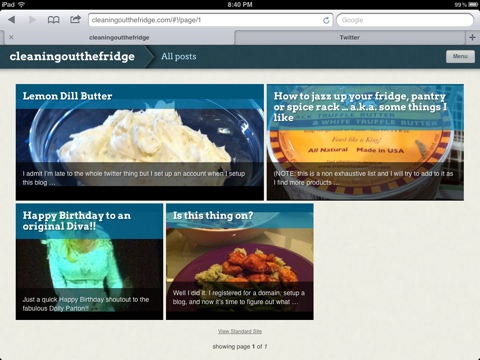 Boobs, butter & batter fried! 21 Saturday Jan 2012 Posted by cleaningoutthefridge in Other Stuff ≈ Leave a comment Ok so I pulled up the blog from my iPad this evening and this is how the summary page looked… Guess I need more content. Share this: Click to share on Facebook (Opens in new window) Facebook Click to share on X (Opens in new window) X Click to email a link to a friend (Opens in new window) Email Click to print (Opens in new window) Print Like Loading... Related